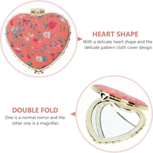 ظاهری قلبی شکل، قابل حمل و سبک، حمل و استفاده آسان، یک آینه آرایش جیبی. این آینه آرایش جمع و جور، شیک و سبک برای سفر یا کیف پول شما مناسب است.