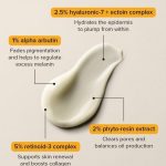 + ۱٪ آلفا آربوتین: رنگدانهها را محو میکند و به تنظیم تولید بیش از حد ملانین کمک میکند