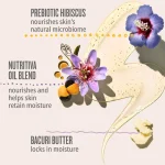 – هیبیسکوس پریبیوتیک: از میکروبیوم طبیعی پوست پشتیبانی میکند.