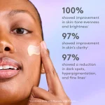 ترکیبات کلیدی: ۵٪ نیاسینامید به بهبود علائم پیری (خطوط ریز، چین و چروک، از بین رفتن استحکام) و همچنین رنگ و بافت ناهموار پوست کمک میکند. دیگلوکوزیل گالیک اسید تولید بیش از حد ملانین را مهار میکند، پوست را تسکین میدهد و فواید آنتیاکسیدانی دارد.