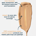مرطوب‌کننده رنگی سبک و پیشرفته FRÉ که ۱۰۰٪ کرم ضد آفتاب معدنی SPF 30 را ارائه می‌دهد و با رنگ پوست شما سازگار می‌شود،