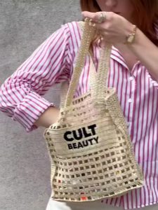 کیف رافیا کالت بیوتی طرح رافیا از برند کالت بیوتی، یک اکسسوری شیک و جمع و جور است که از طناب کاغذی ۱۰۰٪ با گلدوزی ظریف از جنس ۱۰۰٪ پنبه ساخته شده است.